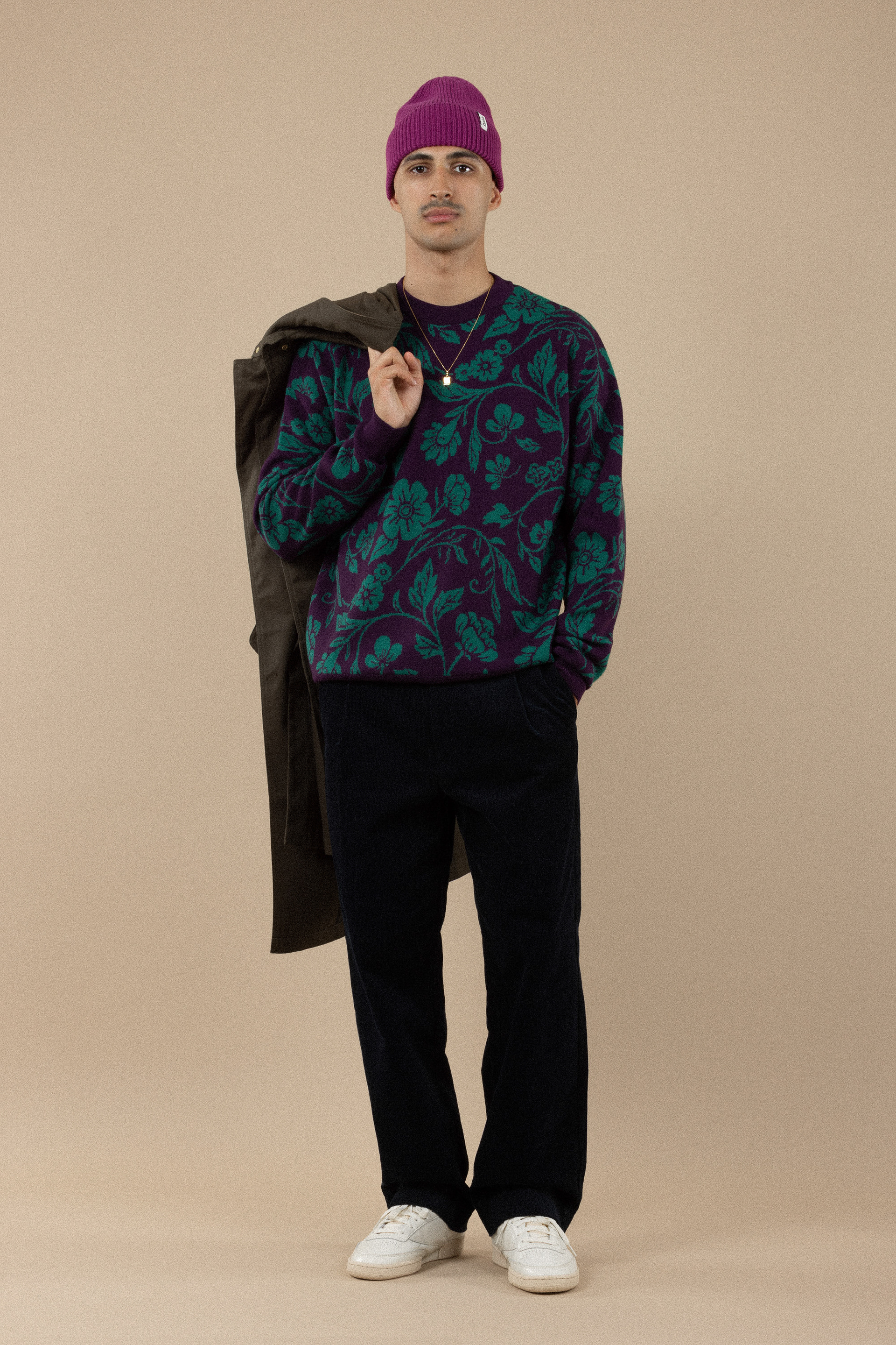 For this new collection of the french brand Drôle de Monsieur, I've created a bold and modern floral pattern, all in monochrome. Hand-drawn and then digitally transposed, this dynamic design has been integrated into a selection of knits and fleece jackets.