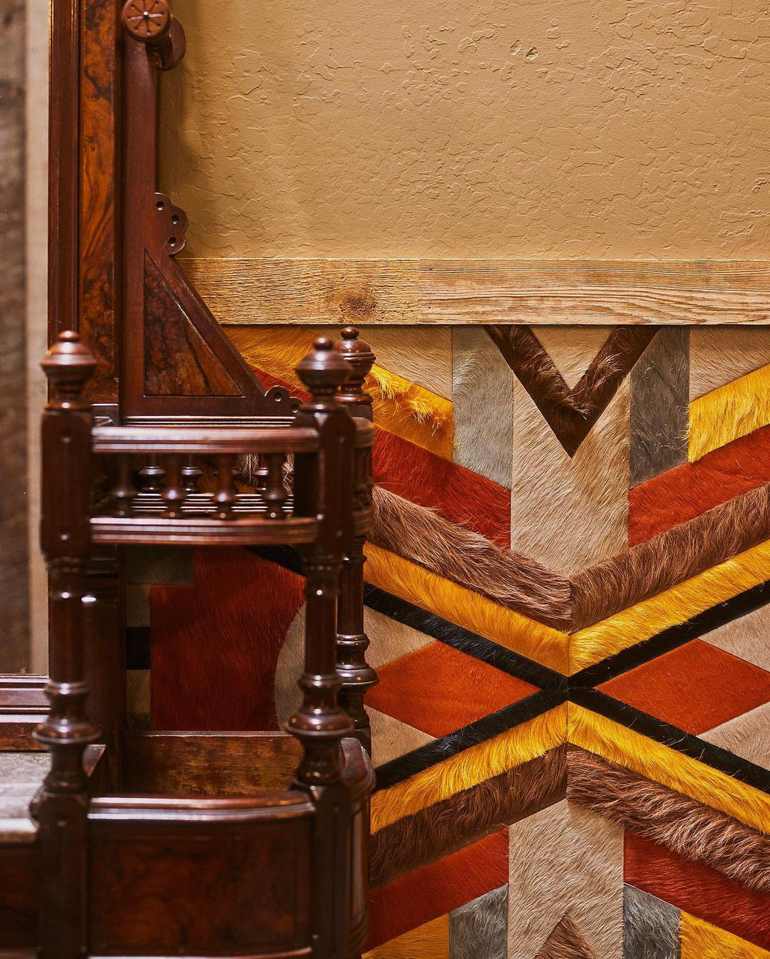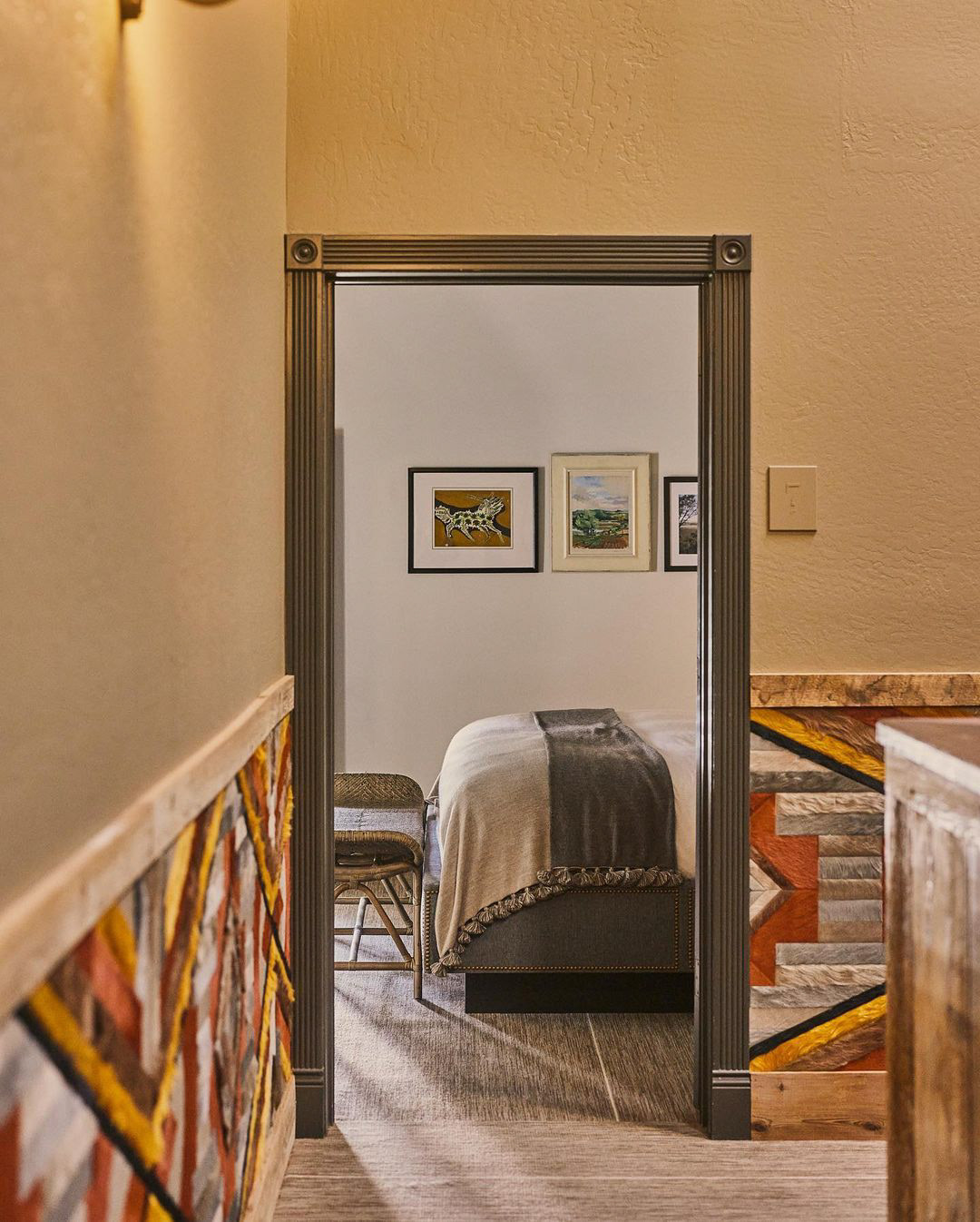 I also drew a pattern for the top part of the lobby, just after the flight of stairs that brings you to the bedrooms. For this part of the project I was inspired by the Navajo blanket that was sometimes used when horse riding in us.