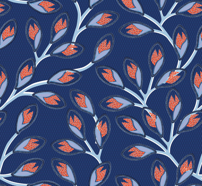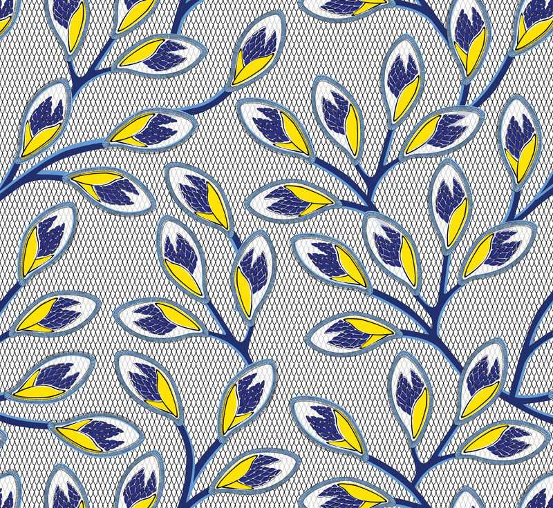 Nyambura is a wallpaper pattern inspired by African's wax textile for Mues Design studio. When I start to work on the project the flower shapes were already there, but nothing else, I work on the colors, the seams, the scale and the background.