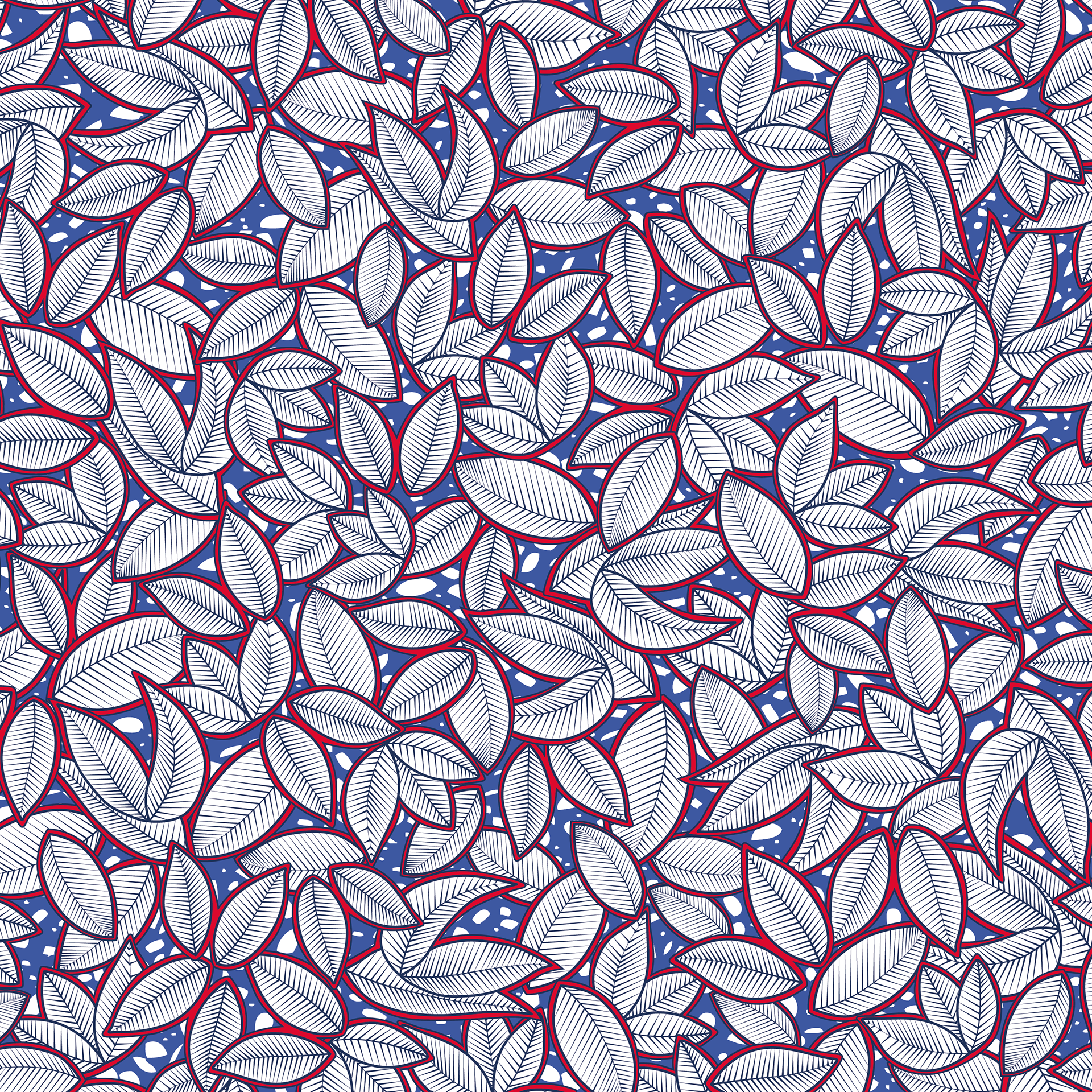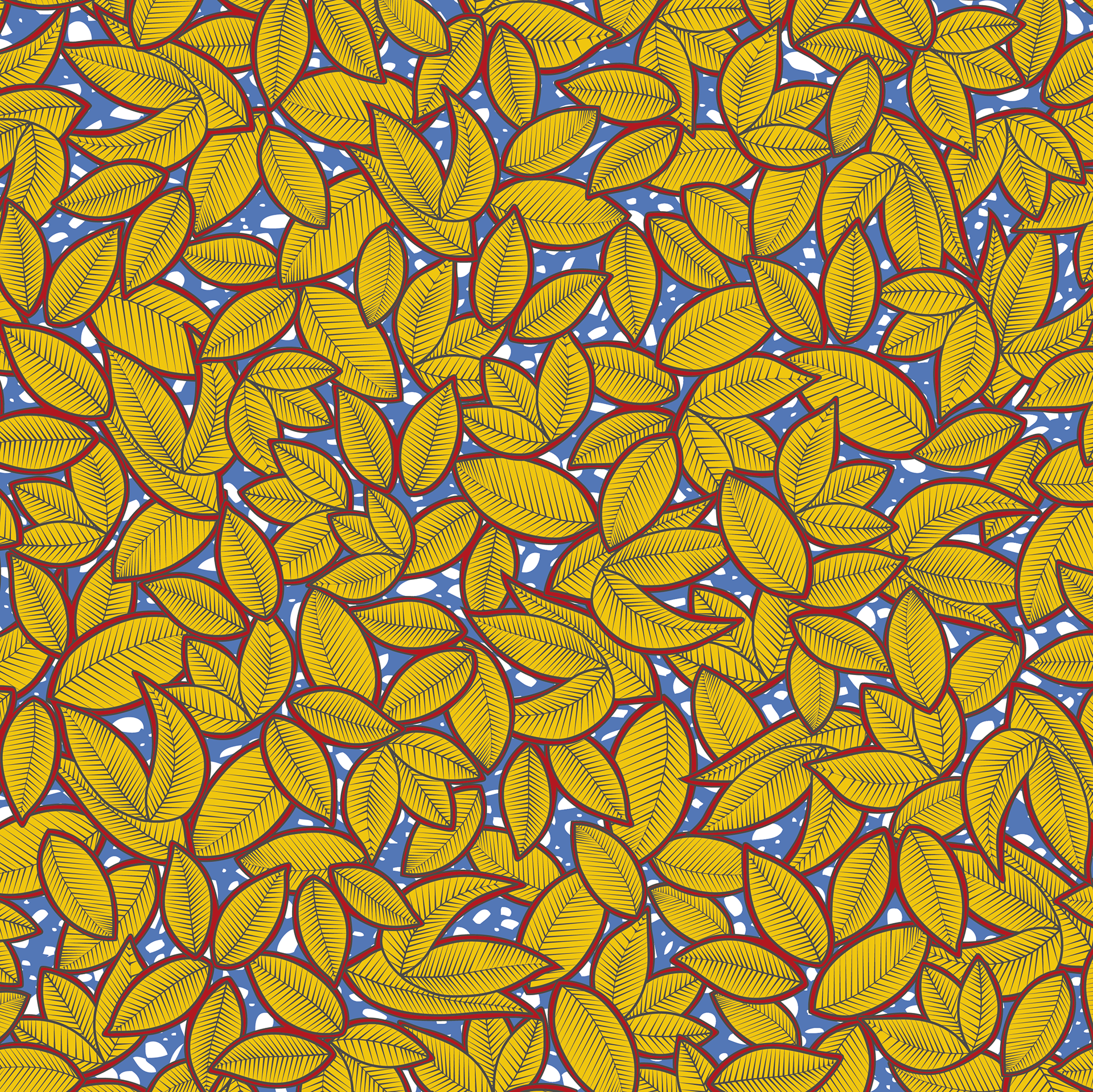 Construction and layers of the pattern : Background color + wax effect + leaves pattern
